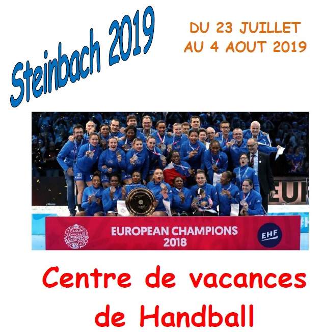 Centre de vacances à Steinbach Publié le 28 janvier 201928 janvier 2019 par Web Master Le comité de Bas-Rhin organise un centre de vacances de handball du 23/07 au 29/07 ou du 29/07 au 04/08. Téléchargez la fiche d’inscription.