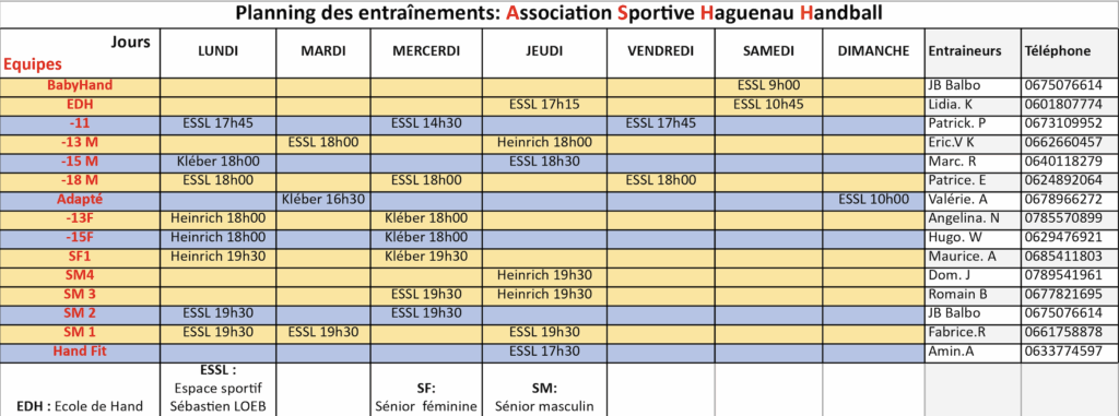 Entrainements 2025-26