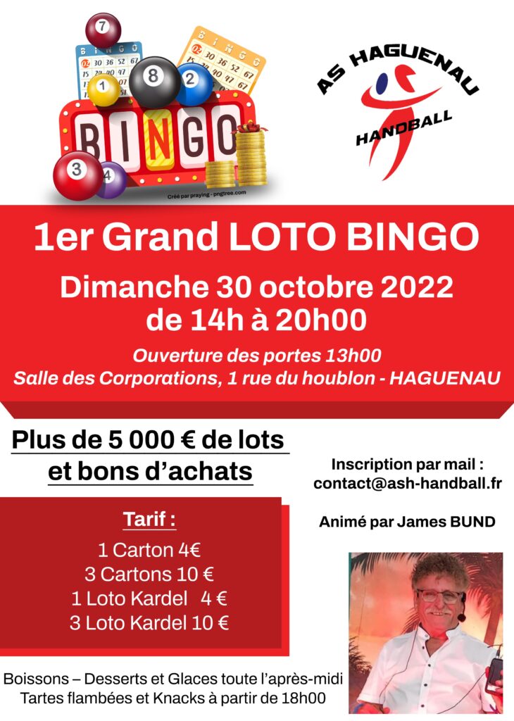 Loto bingo le 30 octobre Publié le 10 septembre 202211 septembre 2022 par Web Master Pour réserver vos places, écrivez à contact@ash-handball.fr en indiquant Nom, Prénom et N° tel portable